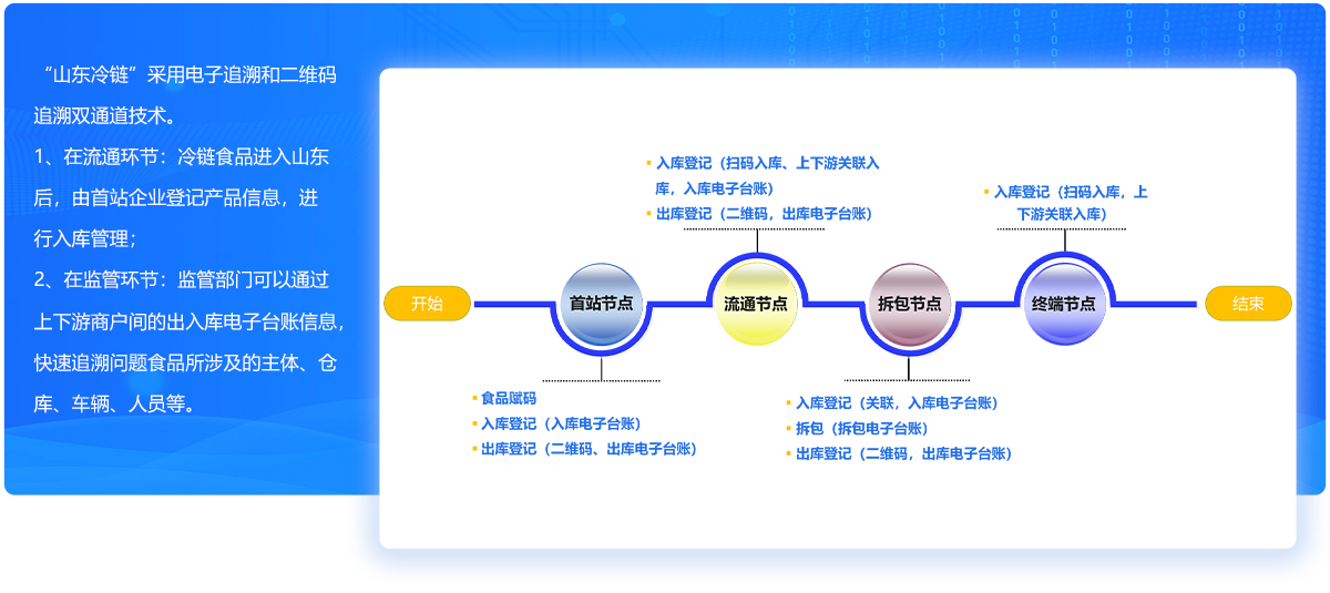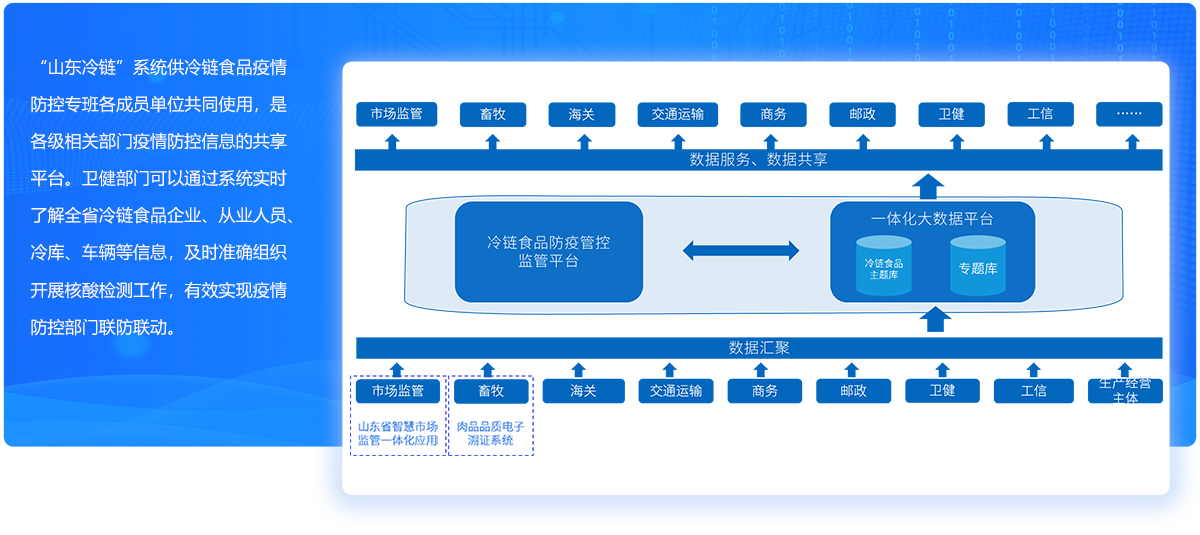 为全面做好冷链食品疫情防控工作,2020年7月底,省政府明确由省市场监管局牵头成立冷链食品疫情防控工作专班,对省内冷链食品相关单位和人员实施动态摸排、定期检测机制,每14天开展一次全省范围内冷链食品、人员和环境摸排检测。为节省人力、提高效率,省政府要求建设山东冷链食品追溯管理系统,以信息化手段为支撑,实施精准防控、精准追溯,全面提升冷链食品疫情常态化防控水平。